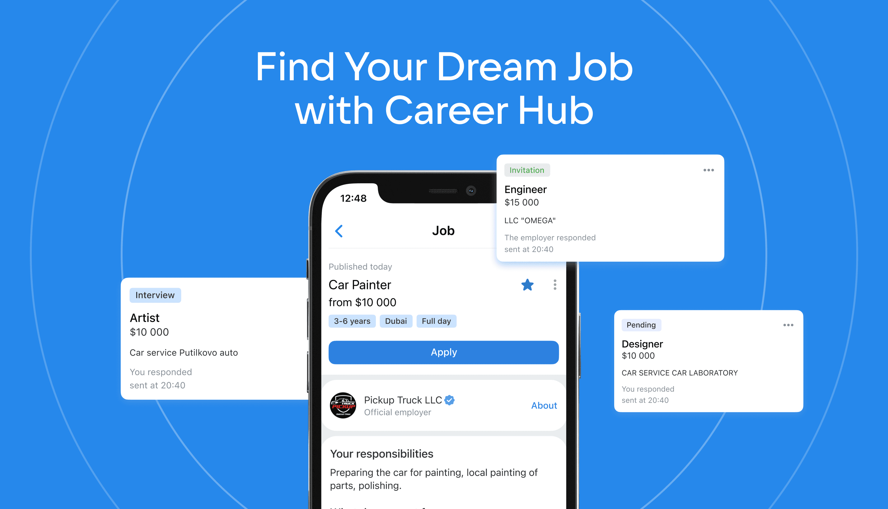 Приложение для поиска работы и подбора персонала, направленное на развитие позитивного карьерного опыта у соискателей и работодателей.