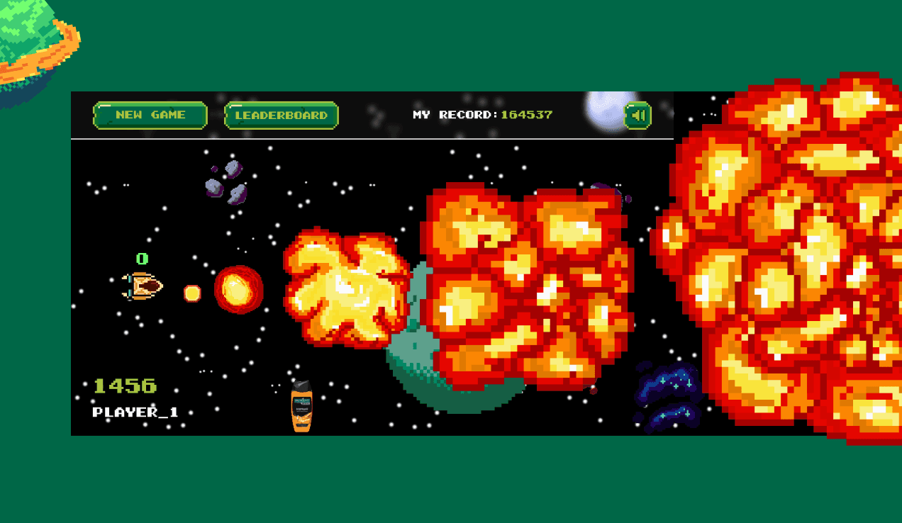 Игра выполнена в стиле пиксель-арт с космической тематикой, создавая ретро-атмосферу.