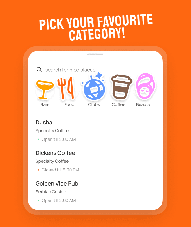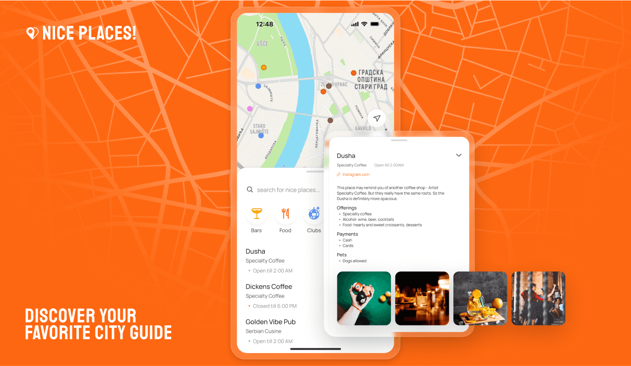 Приложение Nice Places! доступно для загрузки в App Store. Клиент может самостоятельно обновлять карту новыми локациями через административную панель в Sanity. Благодаря универсальному подходу клиент получил гибкую платформу, которую можно адаптировать для других городов, а не только для Белграда.